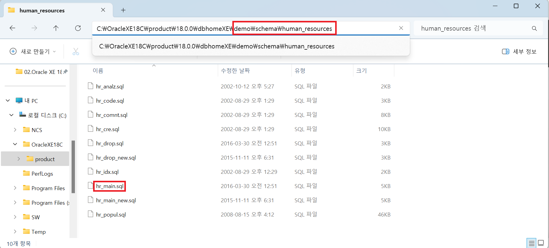 -> OracleXE(자신이 설치한 버전)에 따라 들어가서 찾기
