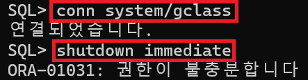 => 오라클 서버를 중지 또는 시작(구동)을 할 수 있는 권한이 없다.