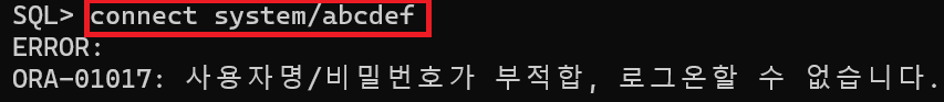 -> 오라클 명령프롬프트인 SQL> 을 띄우기