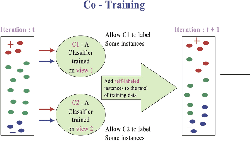 데이터를 여러 독립적 부분집합 혹은 도메인으로 나누어 모델을 학습하여, Semi-supervised 학습에서의 Labeling 데이터 부족 문제를 해결함.