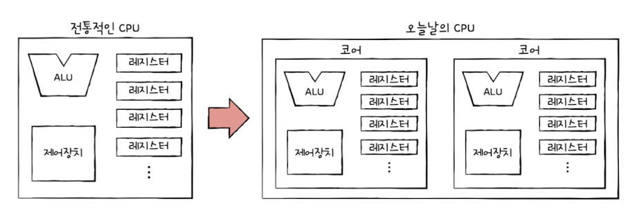 ๐ง One core has multiple register sets and scheduling logic,