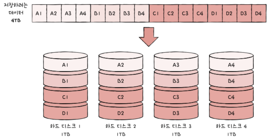 Splits(stripe) data across multiple hard disks without redundancy