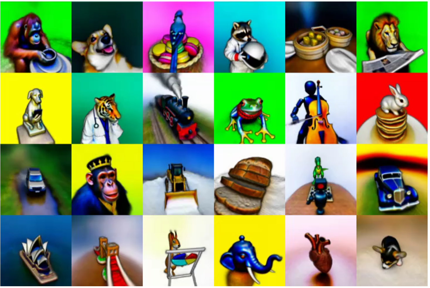 기존 Diffusion 모델들을 활용하여 caption 등의 다양한 condition을 통해 2D 이미지를 생성해내는 논문들을 볼 수 있었다. 이번에 소개해드릴 논문인 DreamFusion은 주어진 caption을 이용해서 3D object를 생성해낸다. 결과를 보면 Stable Diffusion을 활용해서 만든 이미지들인데, 이를 여러 view에 대해 생성하여 하나의 object로 만들어내는 것을 볼 수 있다.