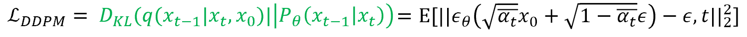 여기서 DDPM은 forward process에 대해서만 loss term을 이용하고, 추가적으로 평균과 분산을 사전에 계산할 수 있었으므로 이를 이용하여 noise만 예측할 수 있었다.