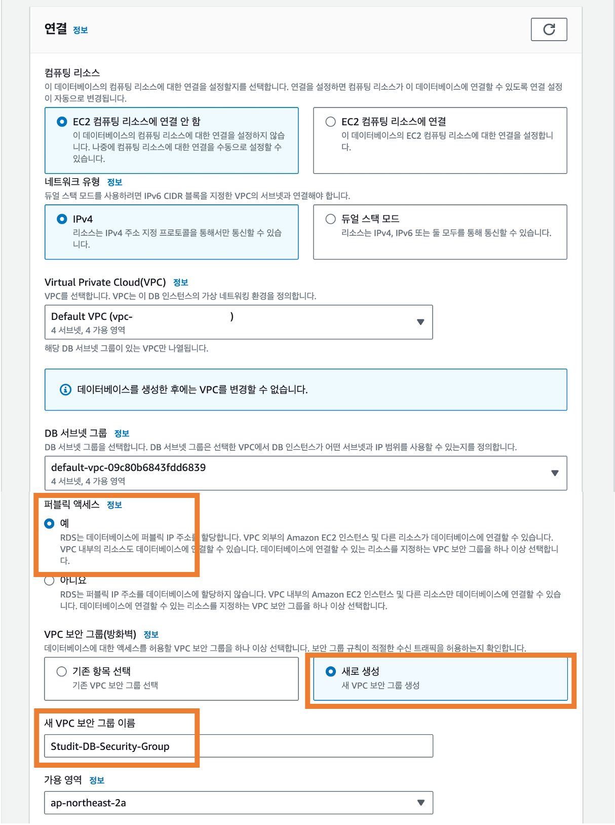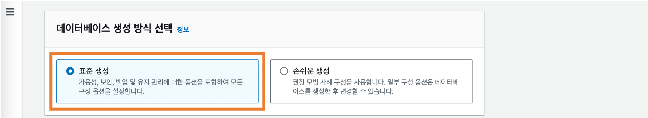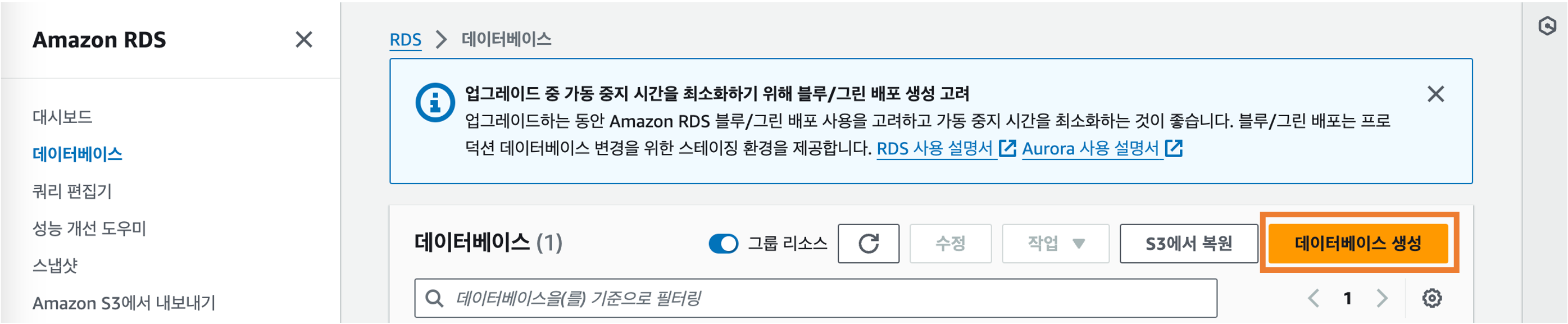 AWS>RDS>데이터베이스>데이터베이스 생성