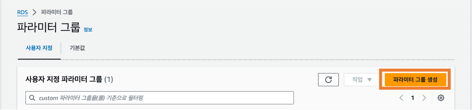 PostgreSQL은 unicode를 지원하고 있어서 사실 파라미터 값을 수정할 필요가 없다. 하지만, 파라미터 그룹이 default이면 추후에 수정이 불가능해서 파라미터 그룹을 생성하여 변경해줬다.