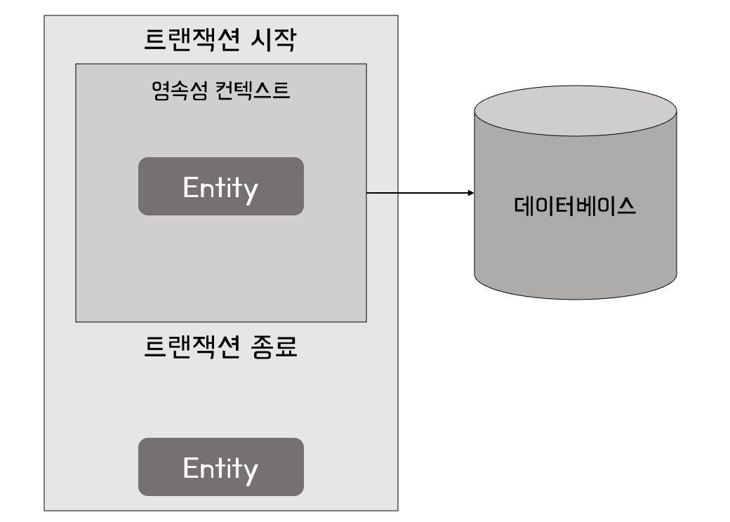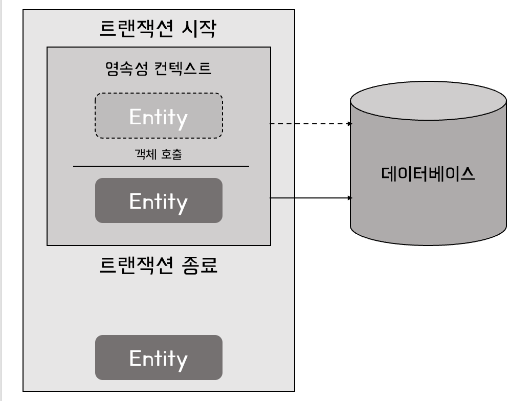 Within a transaction, all the entities inside the persistence context have a direct representation in the database. This is a managed state. Thus, all the changes to the entity will be reflected in the database. Outside the transaction, the entity moved to a detached state, and changes won’t be reflected until the entity is moved back to the managed state.