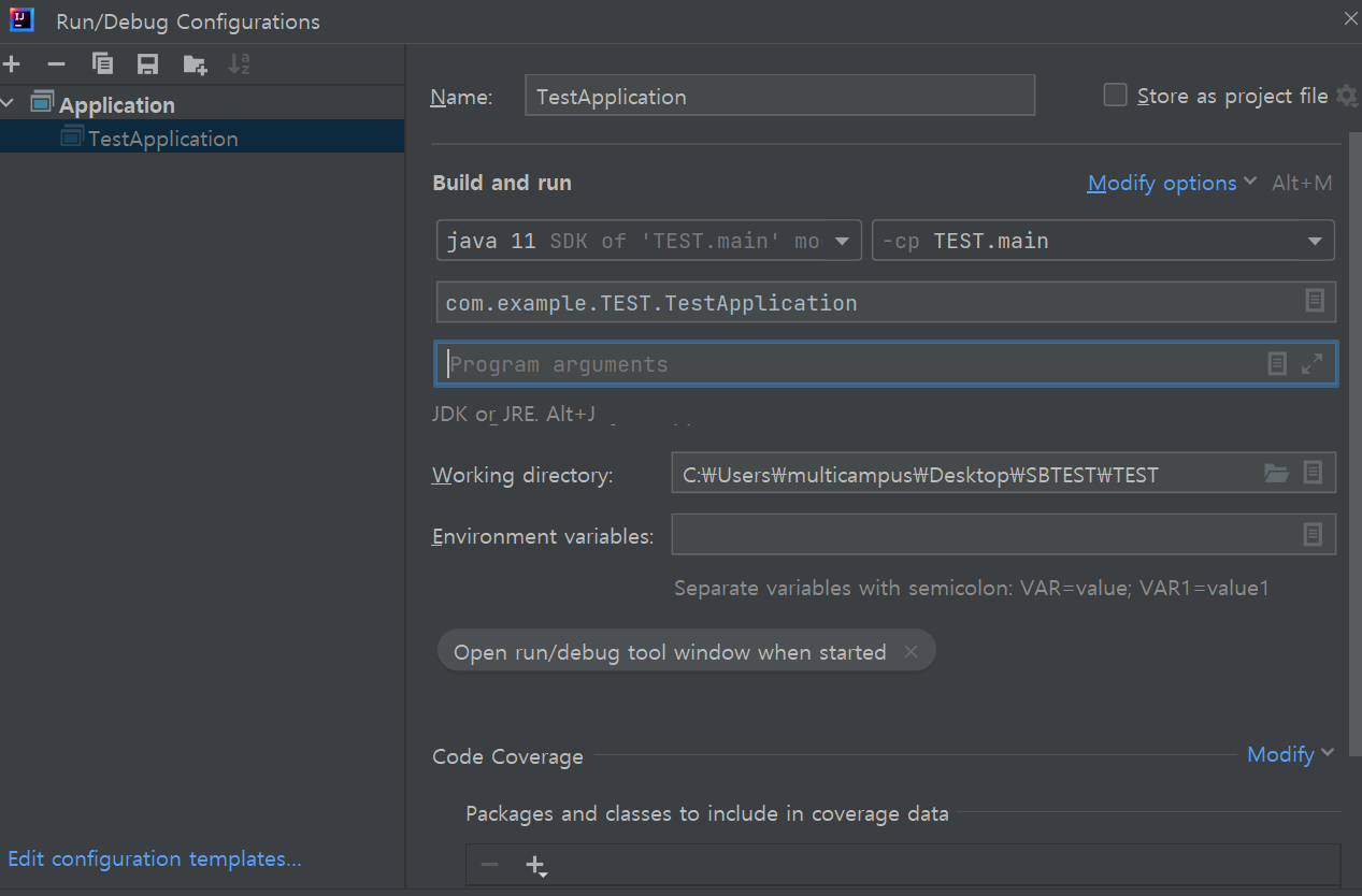 환경 변수니까 Environment variable에 넣으면 될까 해서 넣고 돌렸는데 안됬다.