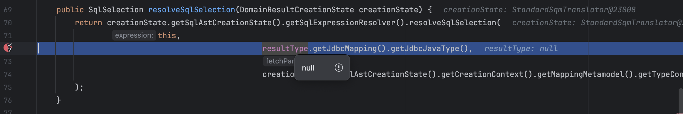 java.lang.NullPointerException: Cannot invoke "org.hibernate.metamodel.mapping.BasicValuedMapping.getJdbcMapping()" because "this.resultType" is null