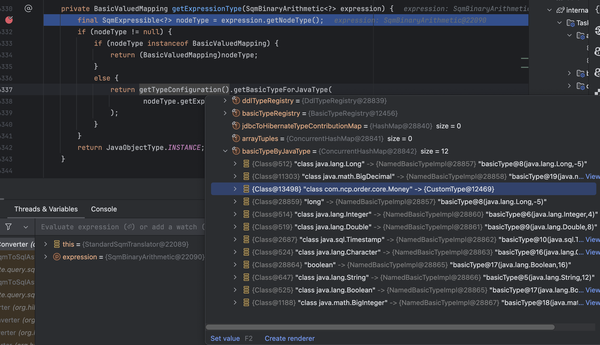 위 설정을 추가하고 나면, BaseSqmToSqlAstConverter.java 의 getExpressionType 을 통해 Money Type 을 처리할 수 있게 된다.