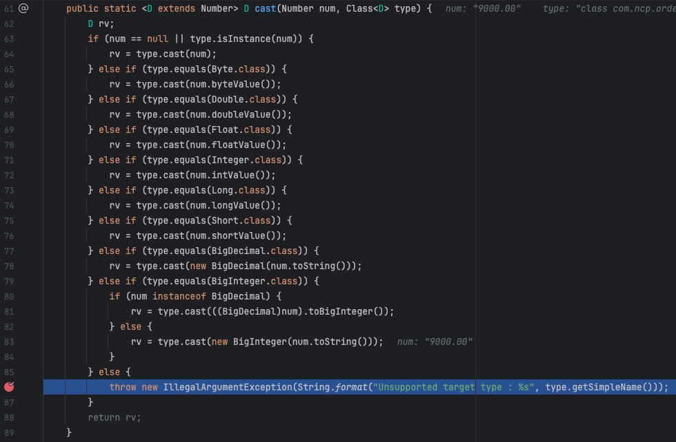 변환해야할 객체 (1번째 사진에서 71줄: type) 은 Money 타입이고