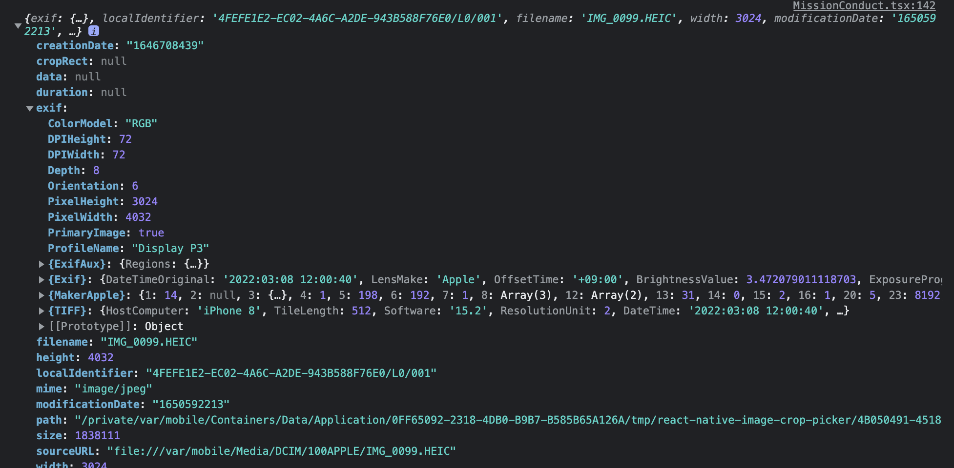 경로 또한 실제 이미지 경로라 react-native-exif도 잘나왔습니다.