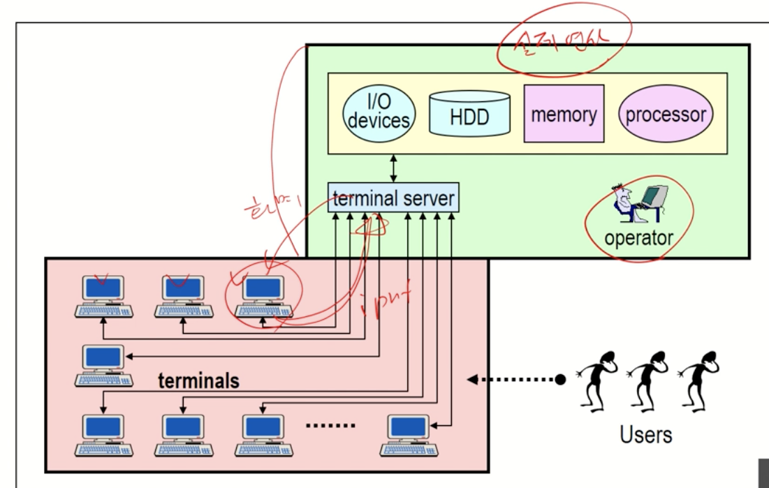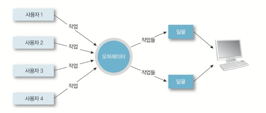 - 사용자의 요청작업(천공카드 등)을 일정 시간 모아두었다가 한번에 처리
