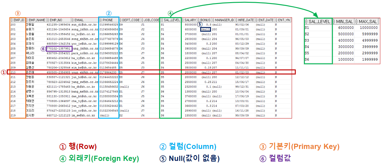 // EMPLOYEE 테이블 값 전체 조회