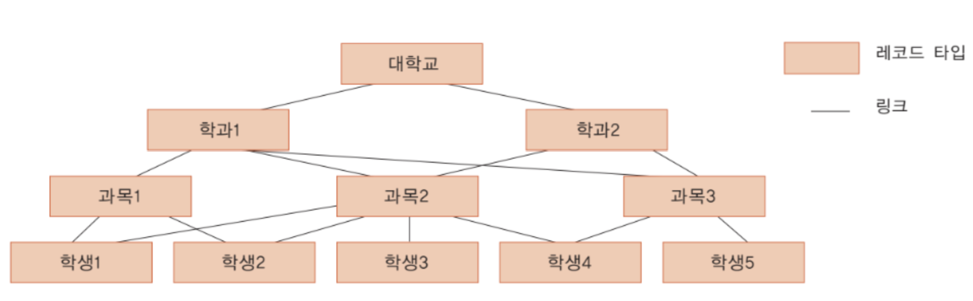 계층 데이터 모델의 한계를 극복하고자 나온 것이 네트워크 데이터 모델