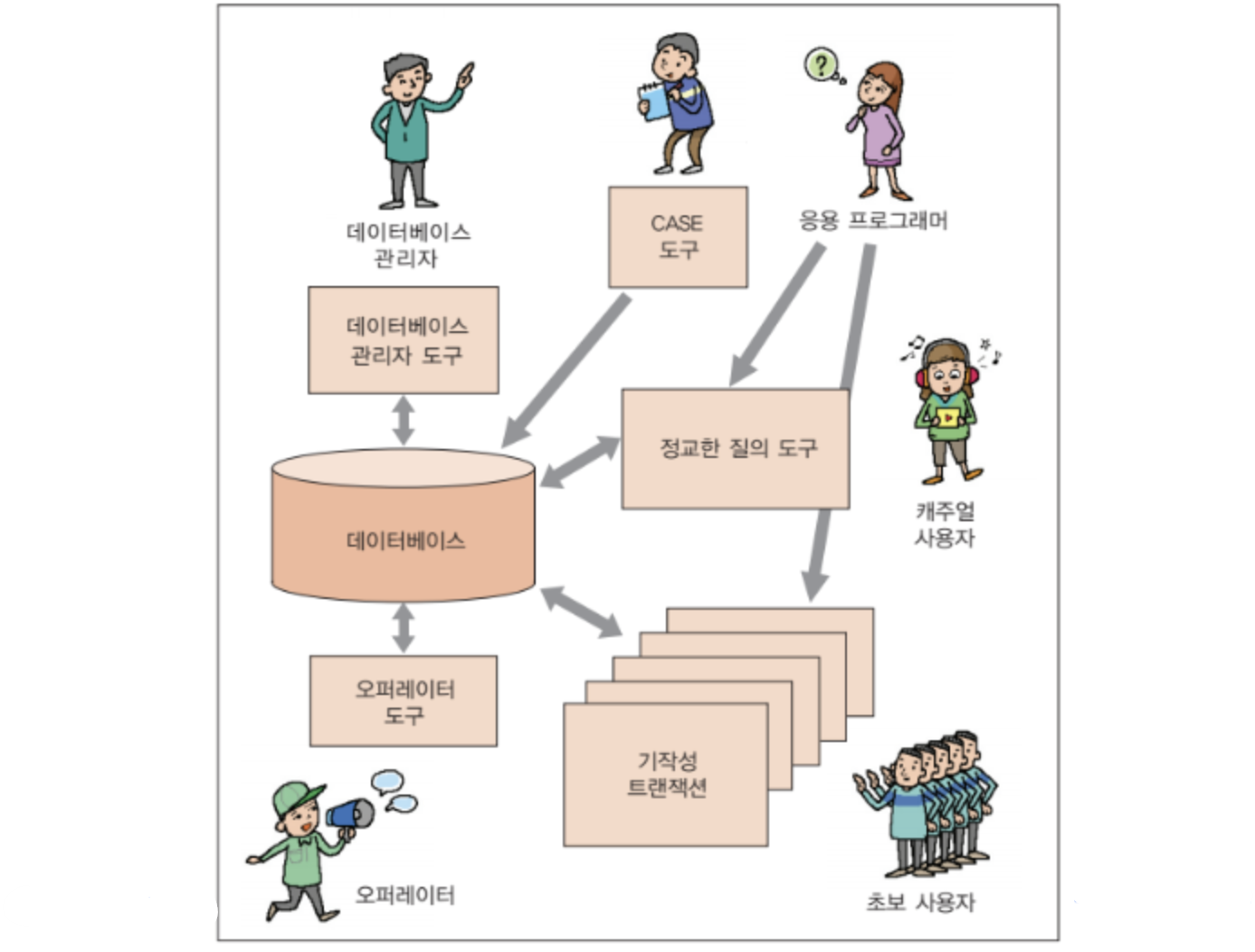 질의하거나 갱신하거나 보고서를 생성하기 위해서 데이터베이스를 사용하는 사람