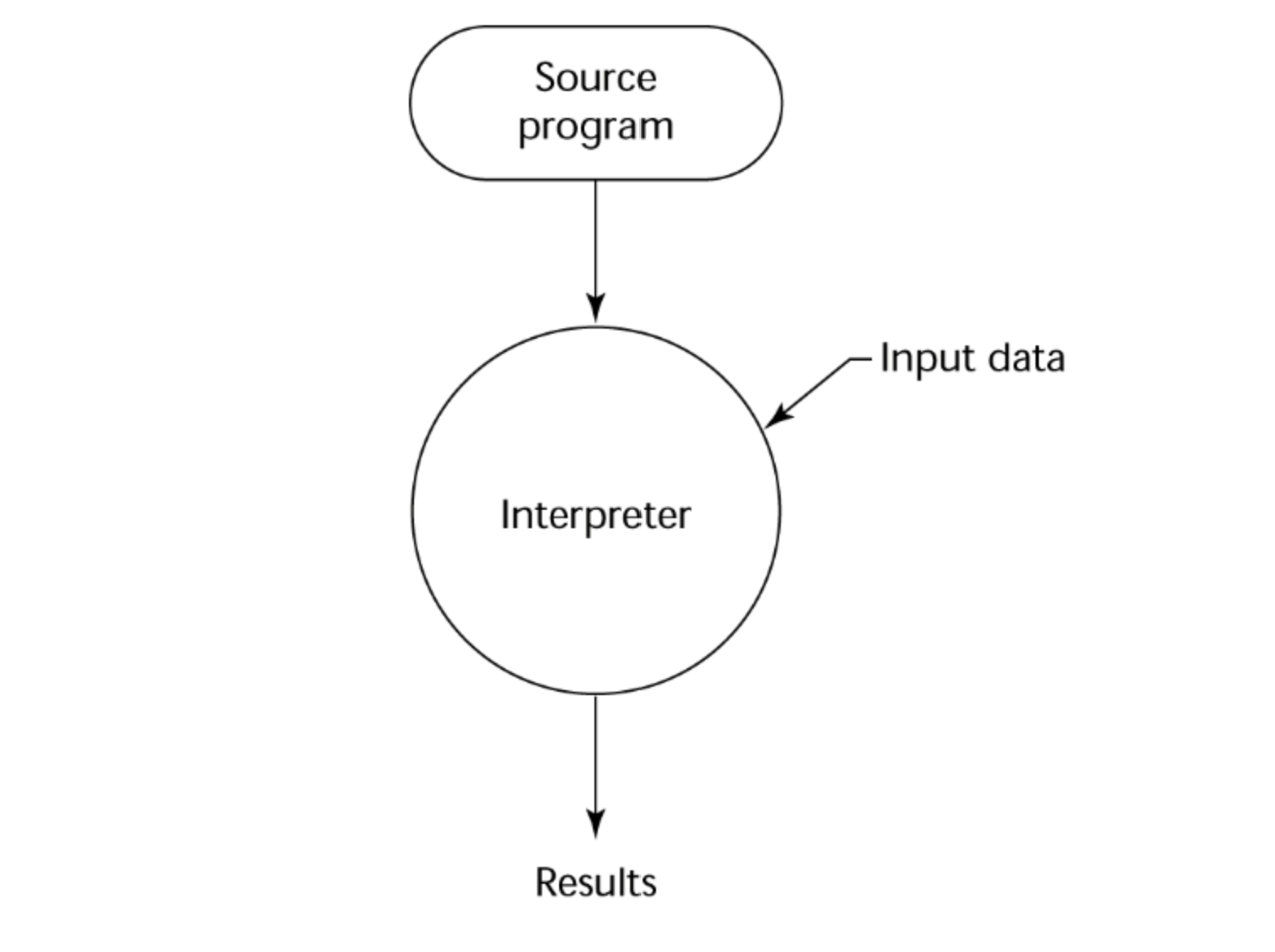 순수하게 인터프리터만 사용하는 언어이다. 미리 컴파일하지 않고 프로그램을 실행할 때, 한 줄 씩 읽어서 기계어로 번역한다. 한 줄 씩 번역하기 때문에, 소스코드나 symbol table이 메모리 상에서 계속 필요해 메모리 효율이 좋지 않다. 또한 for 문과 같은 반복문이 있을 때, 하나의 loop를 끝내고 다시 또 처음으로 돌아가서 번역해야 하기 때문에 실행 시간이 매우 느리다.