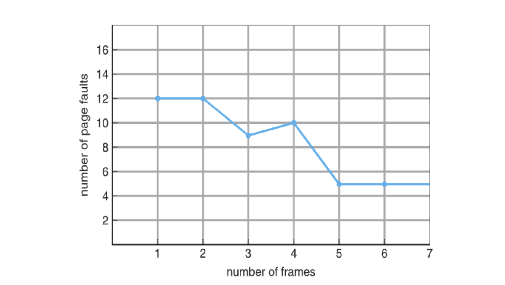 page fault가 발생했을 때, 가장 오래된 page를 교체하는 것이 FIFO ( First - In - First - Out ) 알고리즘이다.