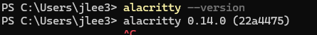 # Alacritty ๋ฒ์ ํ์ธ (powershell ๋๋ cmd์์ ์คํํด ์ฃผ์ธ์)