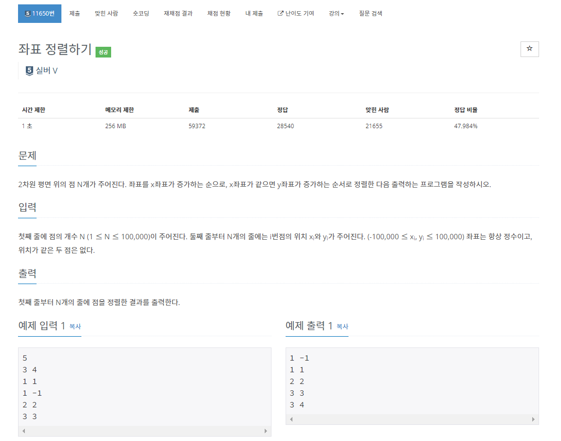 - 두 객체를 비교할 수 있는지를 묻는 정렬 문제이다.