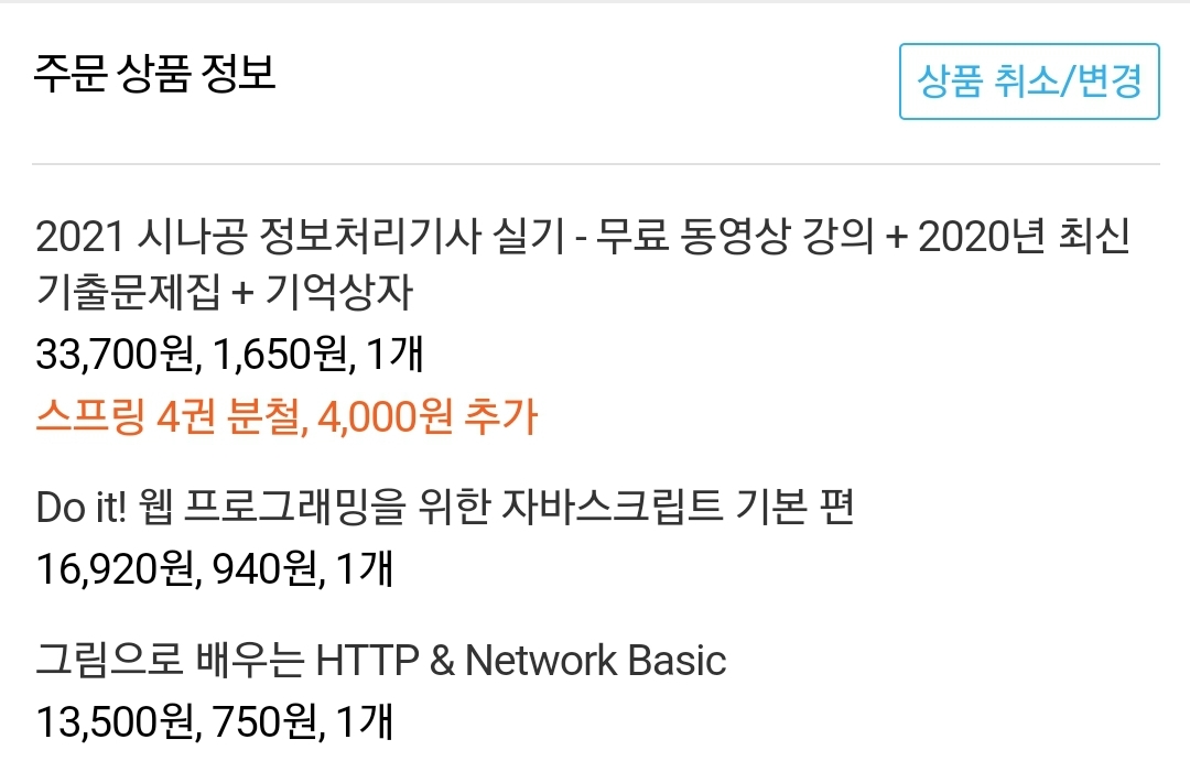 그래서 합격한 기념으로 정처기 실기책과 다른 책 두 권을 질렀다.