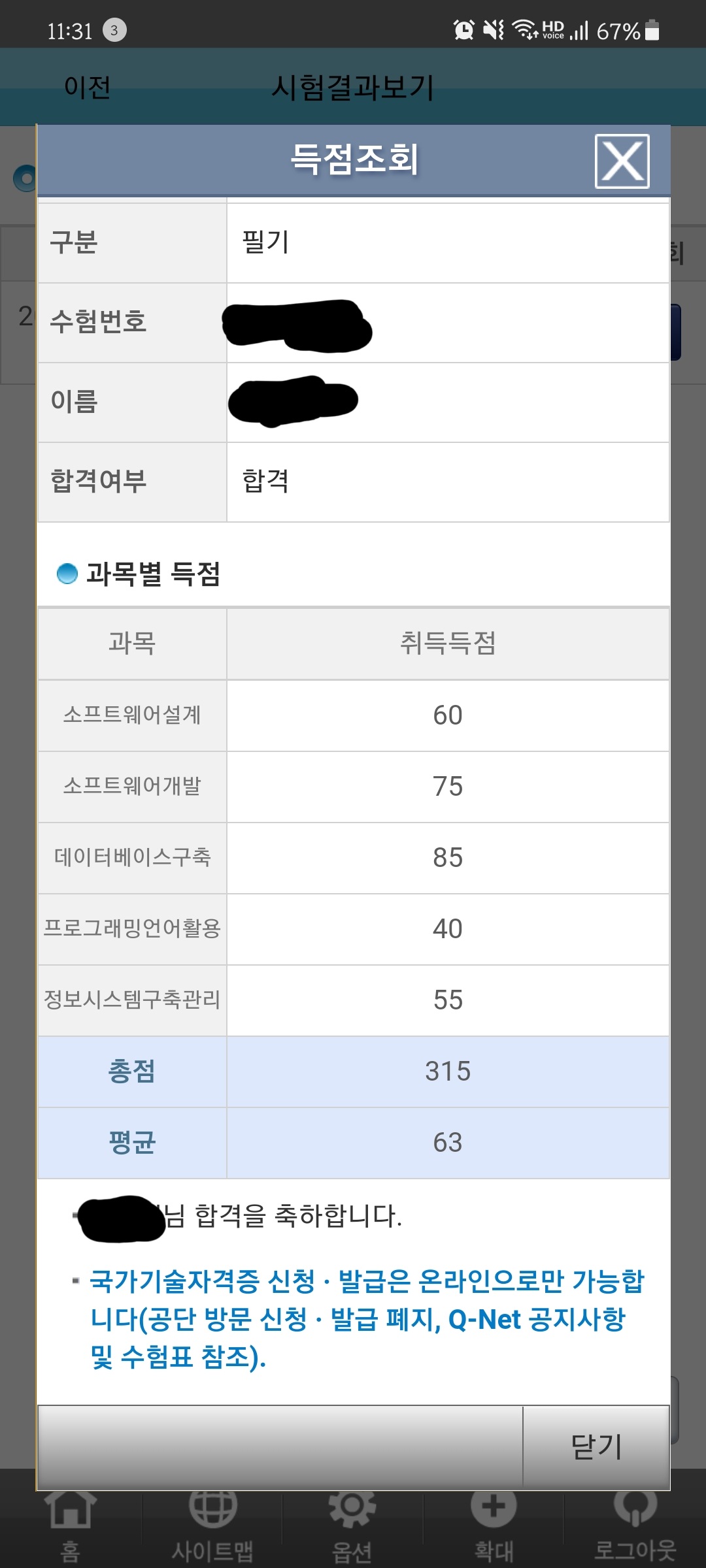 엥 정처기 필기를 합격했어요