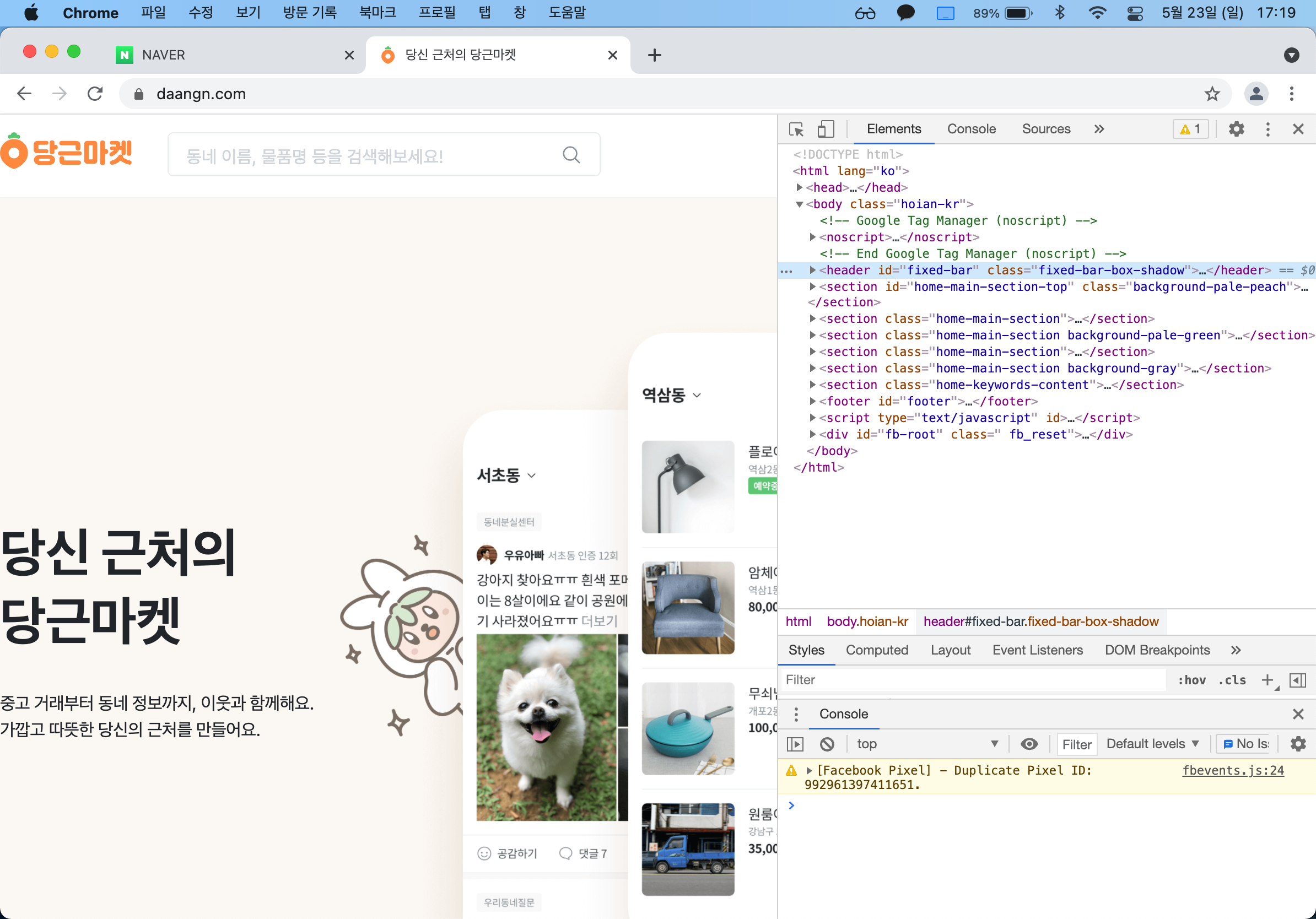 특히 당근마켓은 시멘틱 웹 교과서로 써도 될 만큼 오늘 배웠던 내용들이 일목요연하게 구분되어 있어서 깜짝 놀랐다. 나중에 CSS 기초까지 수강하고 찬찬히 뜯어보면서 복습해야겠다.