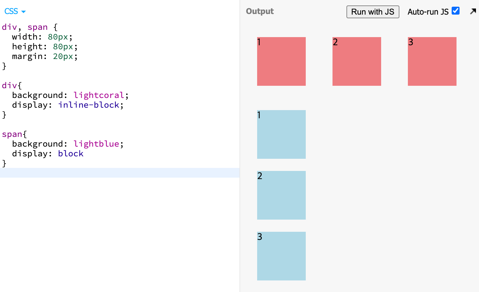 display의 값을 변경해서 블록레벨 요소를 인라인 또는 인라인-블록 요소로 바꿀 수 있다는 것을 배웠다. 인라인과 인라인-블록의 차이점도 알게 됨