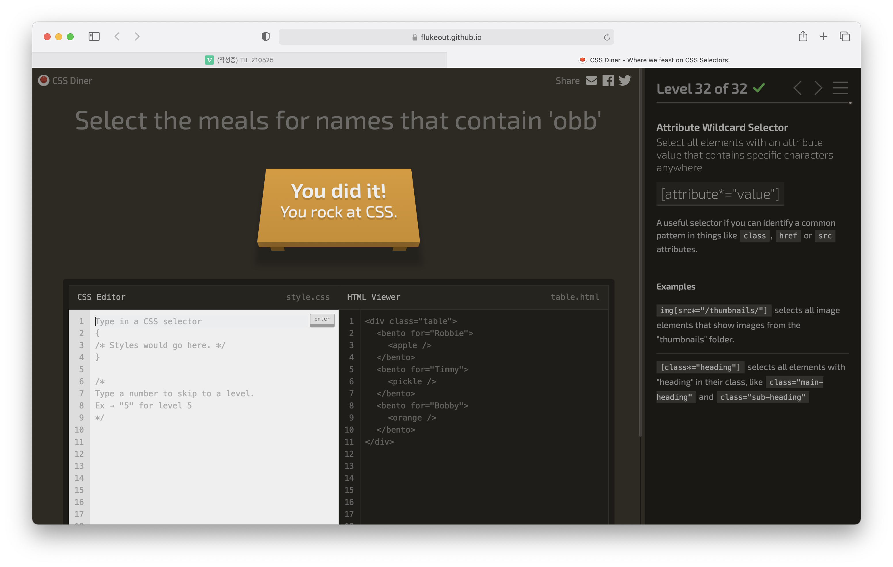 특히 강의 마지막에 소개해준 셀렉터와 플렉스박스에 관련한 게임을 하면서 흥미도가 올라갔는데