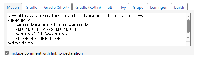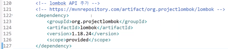 Maven Dependencies 폴더에 lombok API설치된 것을 확인!