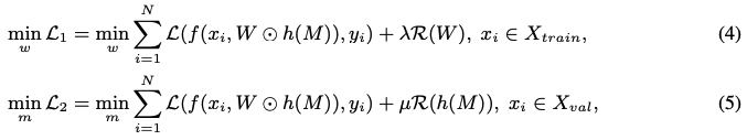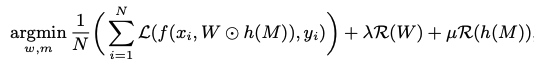 여기서 목표는 모델의 정확도를 유지시켜주는 w를 최소로 가져가면서 sparse한 구조를 찾아내는 것이다.