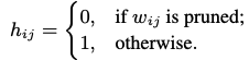 위 식은 pruning 후에 원소 간의 연산이며 T로 정의되는 가중치 행렬이다.