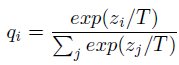 여기서 T=1일 때 우리가 알고 있는 softmax와 같고, T값이 커질수록 확률 분포가 soft한 형태를 가지게 된다고 한다.