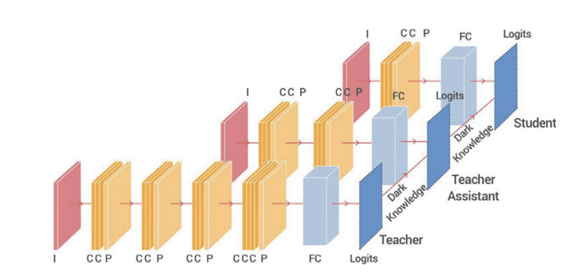 TA 모델은 학생과 교사 모델 크기 사이 어딘가의 크기를 가진다.