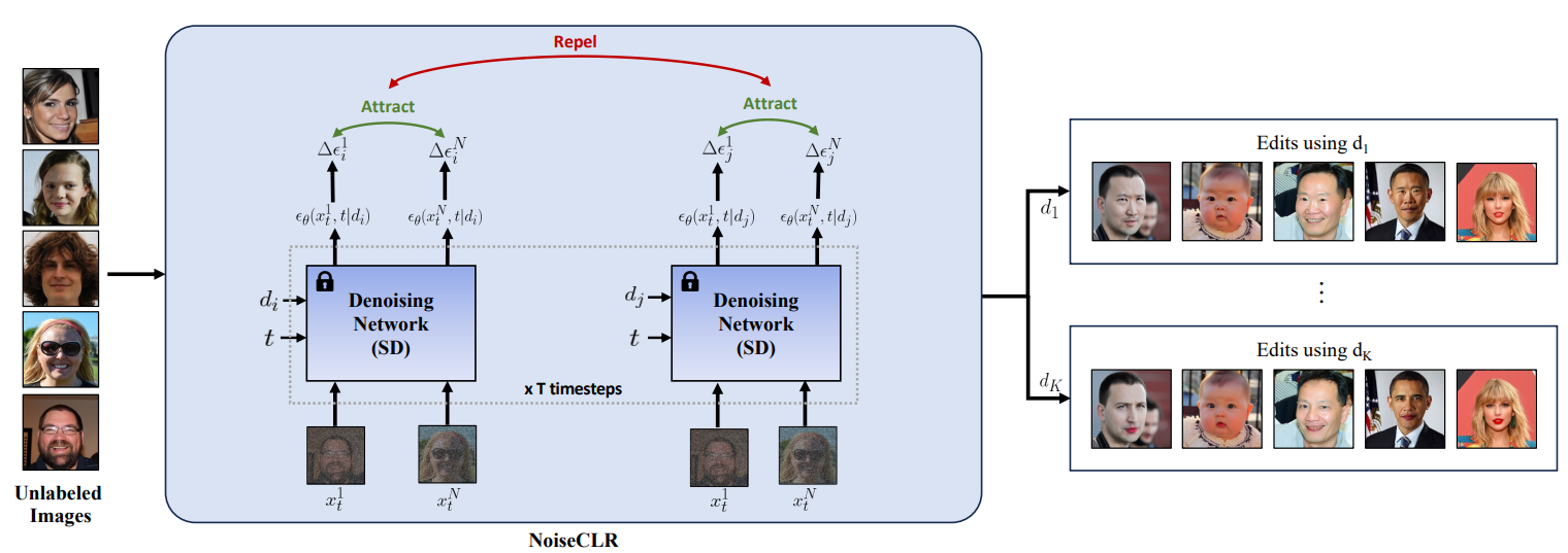 Contrastive Learning을 통해서 K개의 sematic direction을 배우는 것이 NoiseCLR의 우선적인 목표이다.