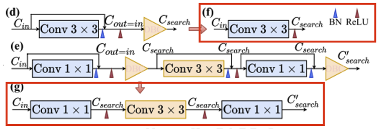 합 연산 이후 DBC layer을 두어서 reparameterization이 가능하도록 한다.