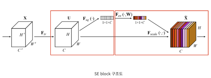 SE block은 채널간의 상호 의존성을 명확히 모델링함으로써 채널 간 feature response를 재측정 시켜준다.