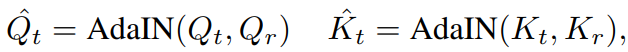 AdaIN를 사용하여서 target과 reference의 쿼리 및 키를 정규화한다.
