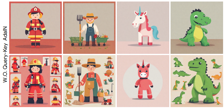 최소한의 어텐션 공유로 본 논문에서는 스타일이 정렬된 데이터의 모음을 생성하는 것을 가능케 한다.