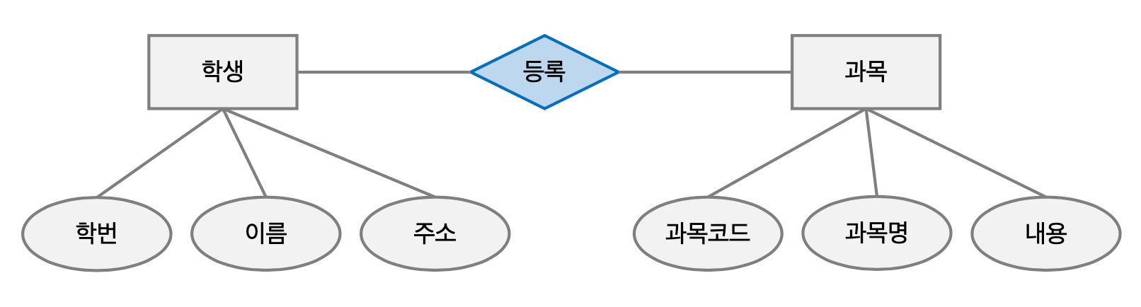 | 대리키(Surrogate Key) | 식별자가 너무 길거나 여러개의 속성으로 구성되어 있는 경우에 인위적으로 추가할 식별자 |