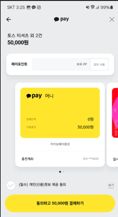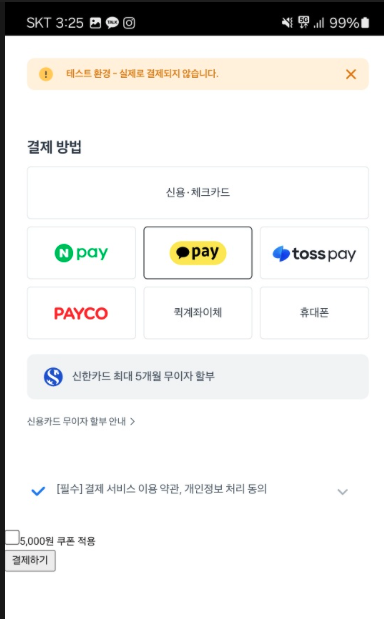 이렇게 카카오페이 앱으로 이동해서 결제가 되는걸 확인할 수 있다