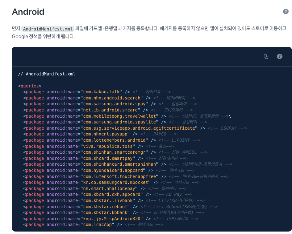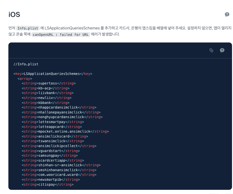 가이드문서에 있는 해당 내용들을 모두 추가해주어야한다.
