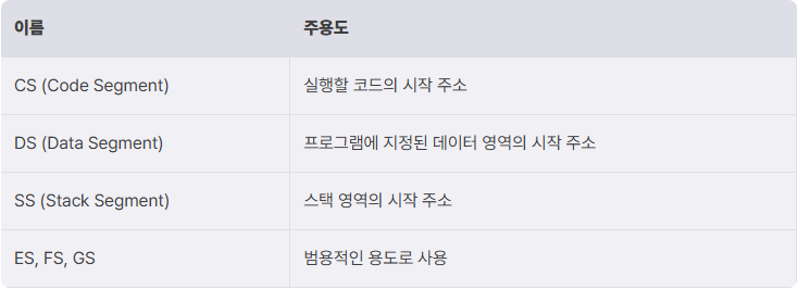 메모리를 세그먼트 단위로 접근하는 데 사용되는 특수한 레지스터