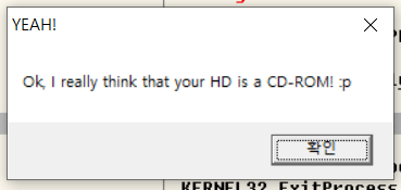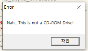 플래그값 변조 후 프로그램을 다시 실행해보면 CD-Rom으로 인식되었다는 알림창을 확인할 수 있다.