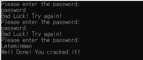 프로그램을 실행하면 다음과 같이 정답을 입력할 수 있는 터미널이 열린다. 문제는 없는데 정답은 있슨...