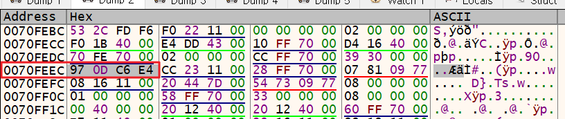 hex값 E4C60D97을 10진수로 변환해 정답을 입력한다.