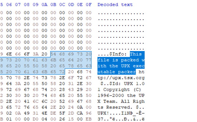 HxD를 통해 확인했을 때, UPX로 패킹되어있다는 문장을 확인할 수 있다.