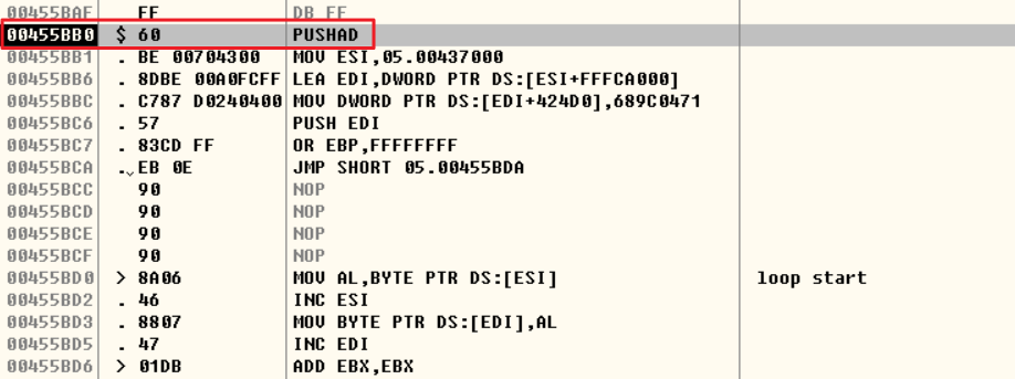 PUSHAD는 UPX로 패킹했을 때 확인할 수 있는 명령어로, 모든 범용 레지스터의 값을 스택에 PUSH 하는 명령어이다.