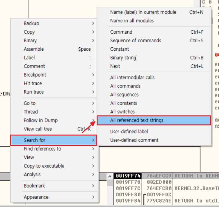 우클릭 > Search for > All referenced text strings