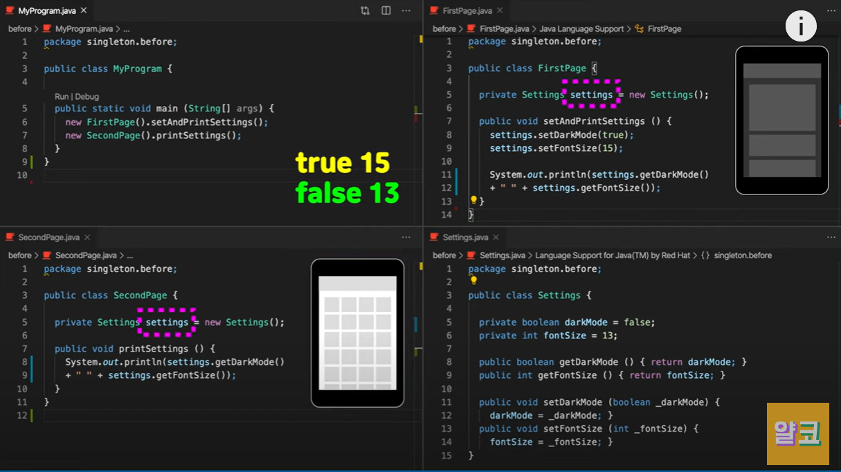 위 사진을 보면 FirstPage와 SecondPage의 Seetings가 서로 다른 객체임을 알 수 있다